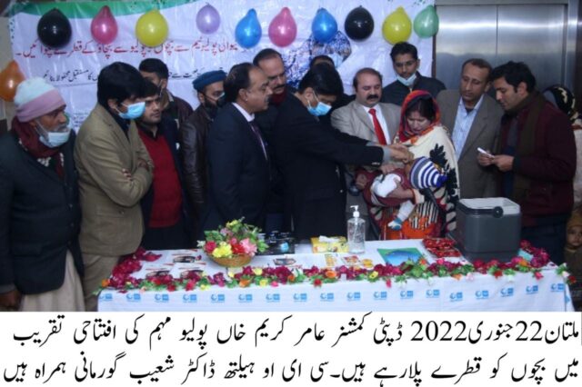 اس سلسلے میں ڈپٹی کمشنر ملتان عامر کریم خاں نے شہباز شریف ہسپتال میں پولیو مہم کا افتتاح کیا، اور اپنے ہاتھوں سے پولیو کے قطرے پلائے۔
