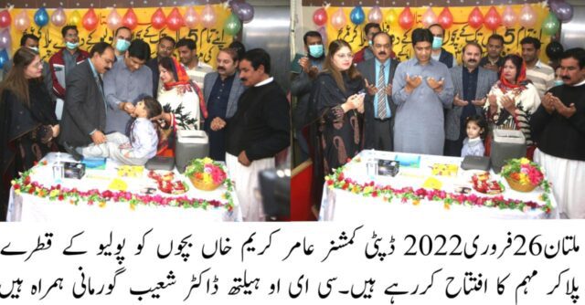 ڈپٹی کمشنر ملتان عامر کریم خاں نے شہباز شریف ڈی ایچ کیو ہسپتال میں بچوں کو پولیو کے قطرے پلاکر مہم کا افتتاح کیا۔