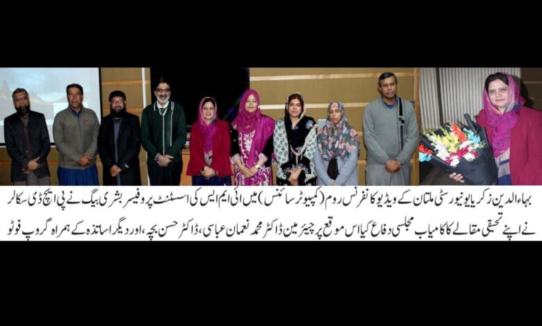 بہاء الدین زکریا یونیورسٹی ملتان کے آئی ایم ایس کی اسسٹنٹ پروفیسر بشریٰ بیگ نے پی ایچ ڈی ریسرچ کا کامیاب دفاع کر لیا۔