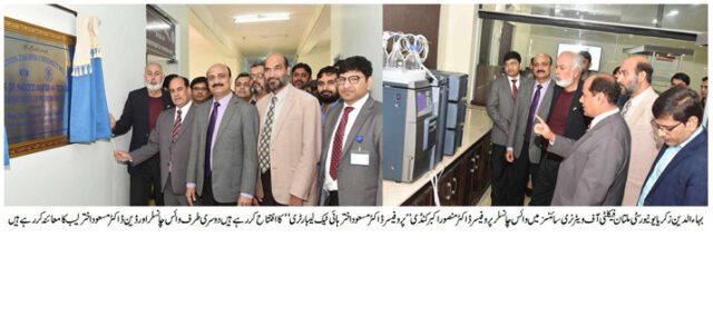 فیکلٹی آف ویٹرنری سائنسز بہاو الدین زکریا یونیورسٹی ملتان میں پروفیسر ڈاکٹر مسعود اختر بانی ہائی ٹیک لیبارٹری کا افتتاح کیاگیا۔