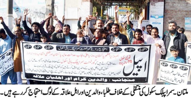 گورنمنٹ سمرا پبلک ہائی سکول حسن پروانہ روڈ کی دوسری جگہ منتقلی کے فیصلہ کے خلاف طلبا اور ان کے والدین سمیت اہل علاقہ کے لوگوں نے احتجاجی مظاہرہ کیا ، اور کہا کہ 60,70سال پرانا سرکاری سکول ہے جس اب کسی اور جگہ منتقل کیا جارہا ہے۔۔