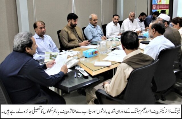 اس میٹنگ میں شدید بارشوں اور سیلاب سے متاثرہ علاقوں میں موجود پیف سکولوں کی موجودہ صورتحال کا تفصیلی جائزہ لیا گیا۔