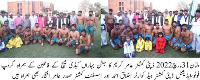 جشن بہاراں 2022 کے سلسلہ میں ڈسڑکٹ ایڈمنسٹریشن ملتان اور سپورٹس ڈیپارٹمنٹ ملتان کے زیر اہتمام سپورٹس کمپلیکس ملتان میں پنجاب گرین اور پنجاب وائٹ کے مابین کبڈی ٹاکرا ہوا، جو کہ پنجاب وائٹ نے جیت لیا۔