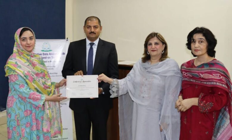 دی ویمن یونیورسٹی ملتان کے سینٹر فار پروفیشنل ڈویلپمنٹ کے زیرِ اہتمام "Qualitative Data Analysis with NVivo – Hands-on Training” کے عنوان سے ایک روزہ تربیتی ورکشاپ ایل شیپ بلڈنگ میں منعقد ہوئی۔