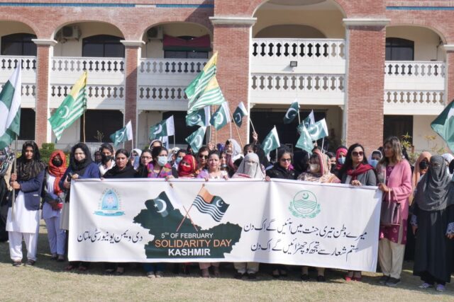 دی ویمن یونیورسٹی ملتان میں شعبہ ڈائریکٹر سٹوڈنٹ افیئرز کے زیر اہتمام یوم یکجہتی کشمیر کے حوالےسے واک اور مختلف مقابلوں کا انعقاد کیا گیا ۔