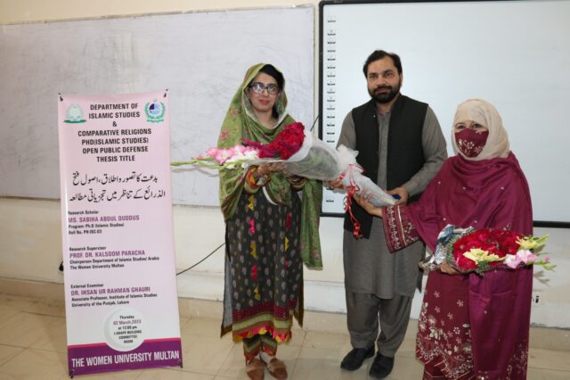 ویمن یونیورسٹی ملتان کے شعبہ اسلامک اسٹڈیز کی سکالر صبیحہ عبدالقدوس کا کامیاب پبلک ڈیفنس کے بعد پی ایچ ڈی کی ڈگری ایوارڑ کرنے سفارش کردی گئی۔