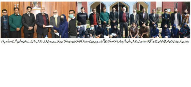 بہاء الدین زکریایونیورسٹی ملتان انسٹی ٹیوٹ منیجمنٹ سائنسز کے تحت مستحق طلباء طالبات میں سکالرشپ چیک تقسیم کیے گئے۔