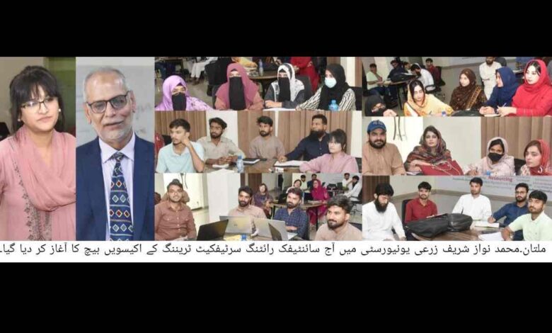محمد نواز شریف زرعی یونیورسٹی میں سائنٹیفک رائٹنگ سرٹیفکیٹ ٹریننگ کے اکیسویں بیچ کا آغاز کر دیا گیا۔