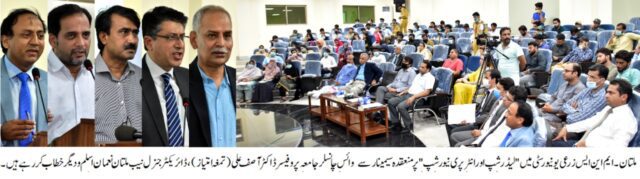 سیمینار سے خطاب کرتے ہوئے وائس چانسلر جامعہ پروفیسر ڈاکٹر آصف علی نے کہاکہ ہمارے طلباء و طالبات نیب ملتان کے ساتھ ملکر گزشتہ سالوں سے لیڈر شپ کمیونٹی ، انگیج منٹ اور انٹر پری نیورشپ کے مختلف کارنامہ ہائے نمایاں سر انجام دے رہے ہیں۔