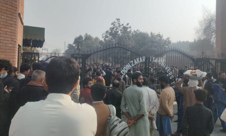 زکریا یونیورسٹی کے عقبی گیٹ بند کرنے اور رکشہ سروس پابندی کے خلاف طلباء کا احتجاج