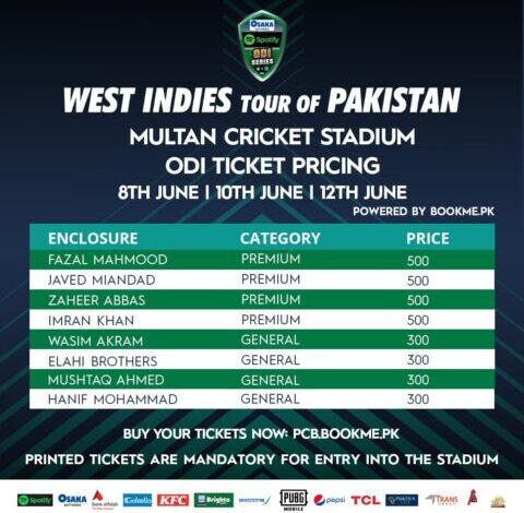 8، 10 اور 12 جون کو کھیلے جانے والے ان میچز کے ٹکٹ کی کم سے کم قیمت 300 روپے اور زیادہ سے زیادہ 500 روپے مقرر کی گئی ہے۔