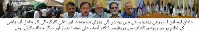 ملتان ایم این ایس زرعی یونیورسٹی میں پودوں کی غذائی مینجمنٹ اور اعلی کارکردگی کے حامل آبپاشی کے نظام پر دو روزہ تربیتی ورکشاپ اور گول میز کانفرنس کا انعقاد کیا گیا۔