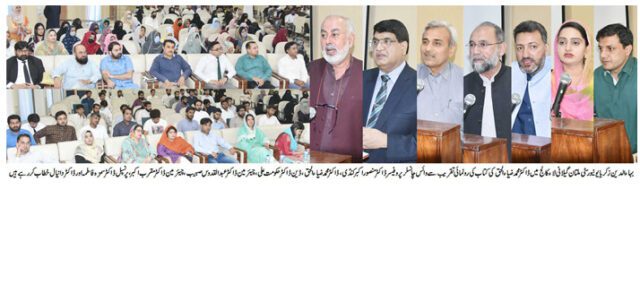 ڈین پروفیسرڈاکٹرحکومت علی ، پروفیسر ڈاکٹر مقرب اکبر ، ڈاکٹر سمزہ فاطمہ نے خطاب کرتے ہوئے صاحب کتاب کی کاوش کو سراہا۔
