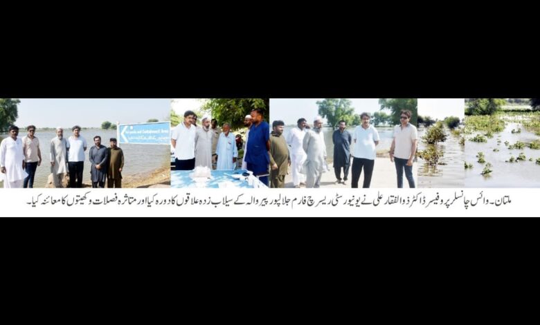 ڈاکٹر ذوالفقار علی کا ریسرچ فارم جلالپور پیروالہ کے سیلاب زدہ علاقوں کا دورہ
