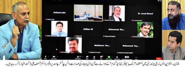ایم این ایس زرعی یونیورسٹی کے شعبہ فوڈ سائنس اینڈ ٹیکنالوجی کے زیر اہتمام گین پاکستان اور ہارویسٹ پاکستان کے باہمی اشتراک سے "زنک بائیو فورٹیفائیڈ گندم”کے حوالے سے ویبنار کا انعقاد کیا گیا۔