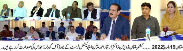کمشنر ڈاکٹر ارشاد احمد کی زیر صدارت ملتان ایجوکیشنل ٹرسٹ کے بورڈ اف گورنرز کا اجلاس ہوا۔